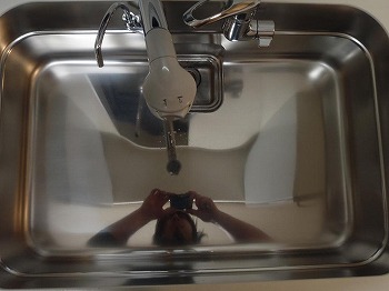 ステンレスの質にもよりますが、今回のシンクは鏡になりました。