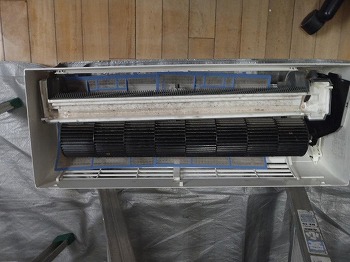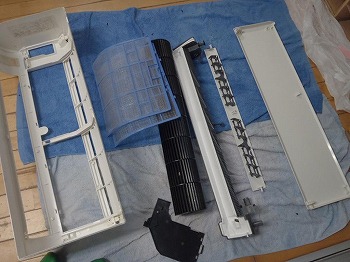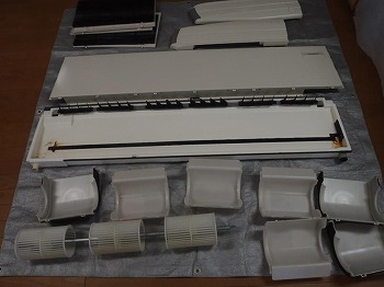 天吊りエアコンの部品洗浄後です