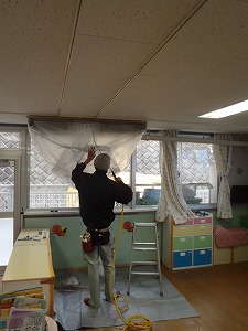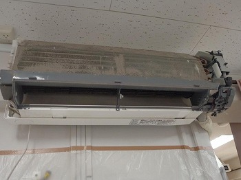 業務用エアコンクリーニングと職員室にあった家庭用の壁掛けエアコンの完全分解クリーニングでした。