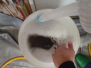 ドレインが自然勾配排水のため、ドレインパンが樹脂系ボンド止めの可能性が高く、ドレインパンが外れない事もしばしばあります。