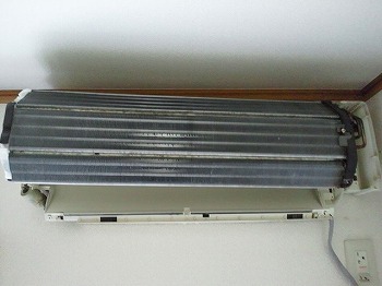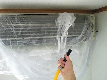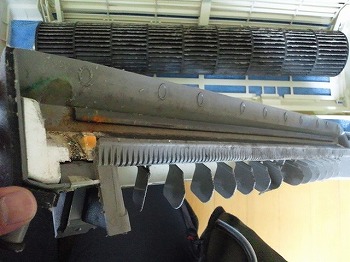 アルミフィンの裏側から手前に打ち込む しゃくり洗浄をしていきます