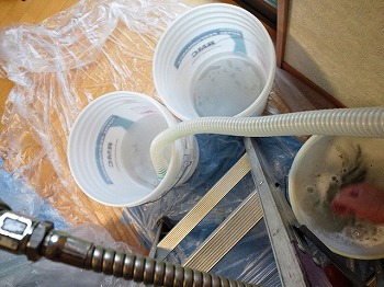 ドレインパンの洗浄前と洗浄後です