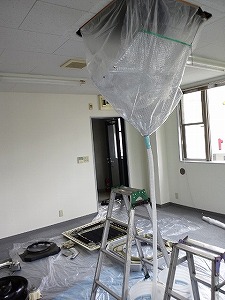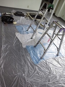 タイルカーペットという事もあり、3重養生です