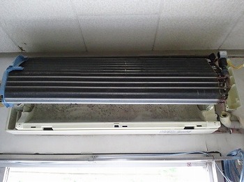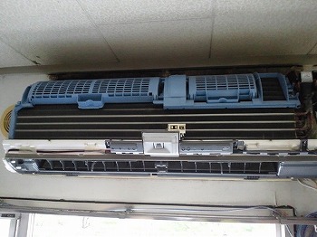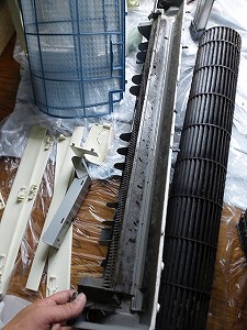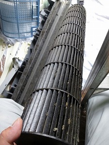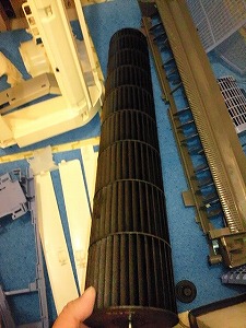 普段見えない送風ファンが入っていたところで普通のエアコンクリーニングでは届かない場所も目視でカビや汚れを確認できるところが完全分解の良いところです