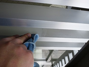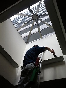 エントランスの高所部分もホコリ落としをしていきます