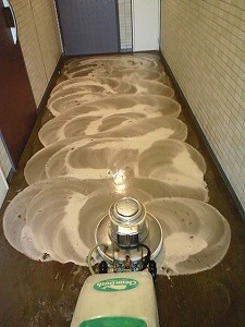 共用廊下の洗浄の様子です