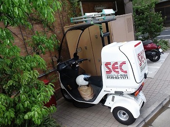 この日エレベーターの業者さんの点検で、使用されていたバイク