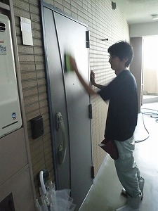 作業内容・・・共用廊下の床清掃・扉類の拭き掃除