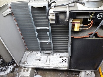 まずは室外機のクリーニングから行いました。