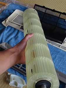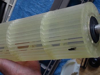 ファンの洗浄前と洗浄後です