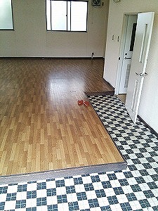 入り口からトイレ周辺までタイルカーペットです。
