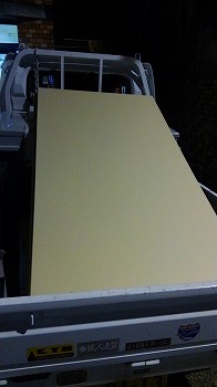 出動前夜 弊社所有の軽トラに 掃除道具ではなく ボードが9枚積まれておりました(笑)