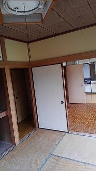 オーナー様からの依頼で、和室の砂壁に壁紙を張ることになりました。