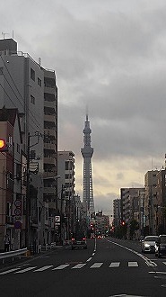 霧がかったスカイツリー。作業をする事には晴天となりました。