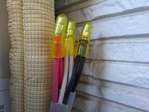 圧着工具で、絶縁体チューブを被せて絶縁と共に雨水の侵入をカットします。