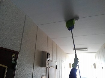 まずは、蜘蛛の巣等をホウキで物理的に除去していきます