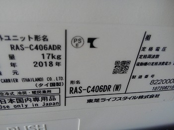 RAS-C406DR(W)という東芝製のお掃除エアコン 大清快