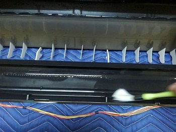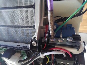 壁付けのまま作業する掃除屋さんは、右上のアースを2本外す事になるので、天井との隙間がないとキツイかもしれません
