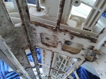 この様な感じでファンが収まっているので、世の中に出回るエアコンクリーニングだと除去は無理です