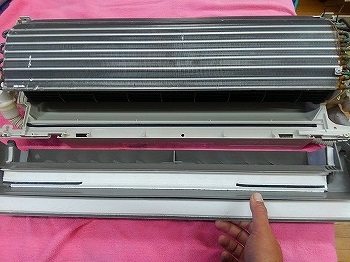 パナソニックエアコンの掃除 お掃除エアコンナノイーエコナビCS-EX281C-Wのエアコン完全分解クリーニング