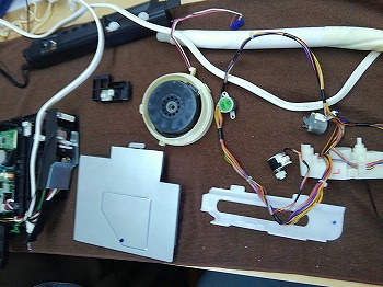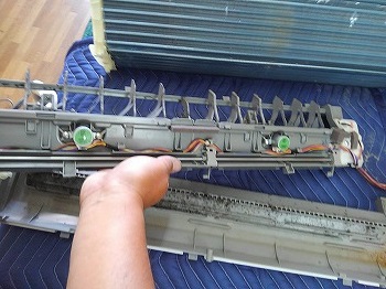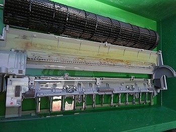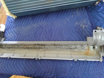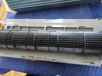 汚れは細部に宿る と思っている当店は、さらに分解しエアコンをバラバラにしていきます