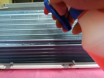 ケルヒャー等の高圧洗浄機でないとアルミフィンは打ち抜けないアルミフィンの分厚さで、壁掛けの世に出回る従来のエアコンクリーニングで使用する高圧洗浄機の最高出力3.5Mpaであっても洗浄しきれません(マシにはなりますが、臭いは残ると思います)