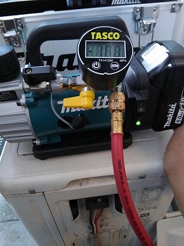 休み前に、5台のエアコンの取付と浴室再生塗装の養生剥がし、原状回復工事の続き等々(笑)