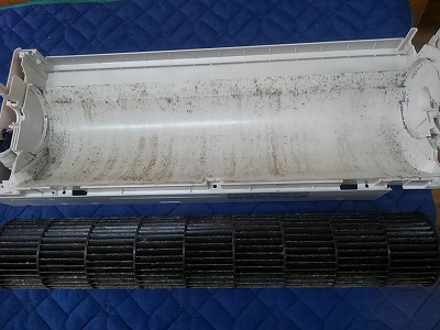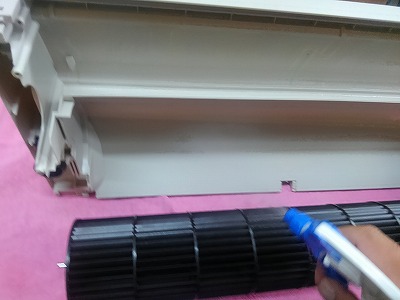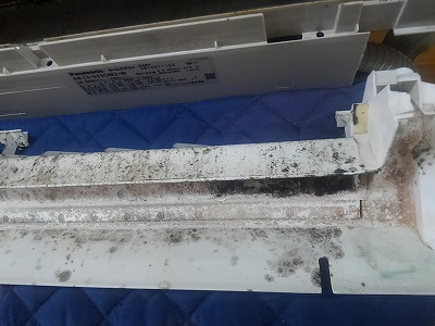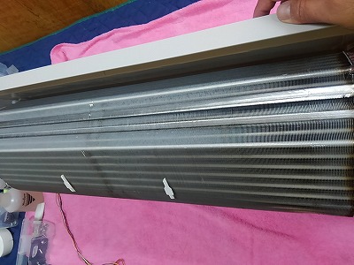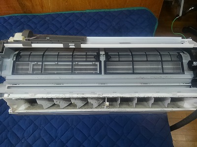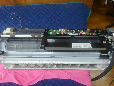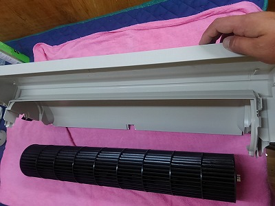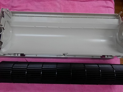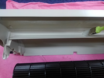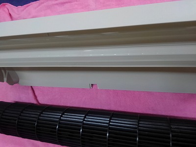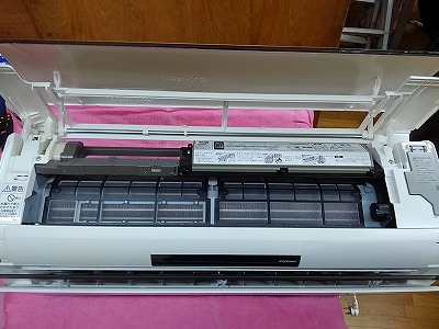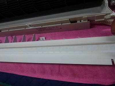 パナソニックエアコンの掃除 お掃除エアコンナノイーエコナビCS-633CXR2-Wのエアコン完全分解クリーニング