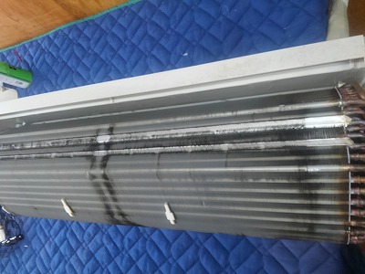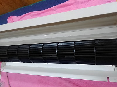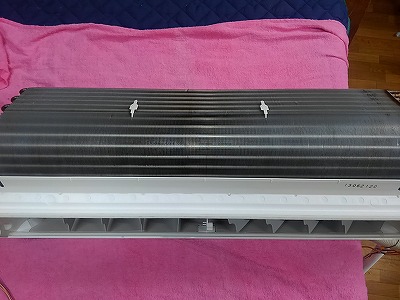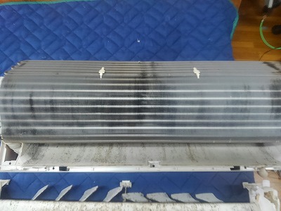 上画像の様に、アルミフィンが被さっているので汚れの根源は壁掛けでの洗浄では難しいです