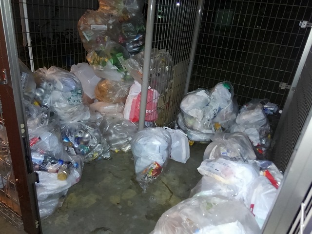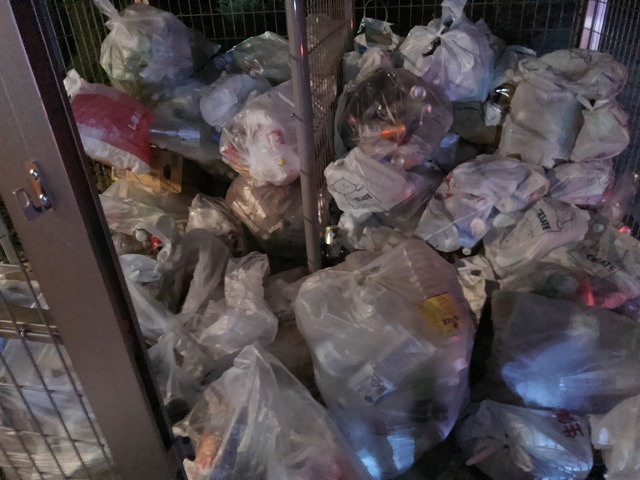 瓶・缶・ペットボトル・プラ・可燃・不燃が入り乱れており、足元にはバナナの皮があったり。