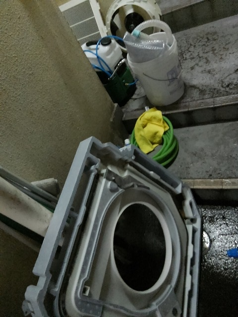 塩素をブチまいて、消毒しゴミをわけて配置します