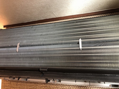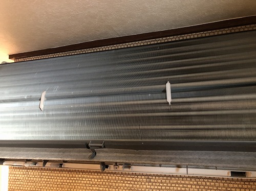 1階の大広間のエアコンのアルミフィンのビフォーアフターです