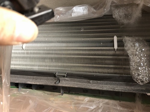 個室のエアコンも去年作業させていただいたので、あまり汚れていませんでしたが、丁寧に作業していきました。