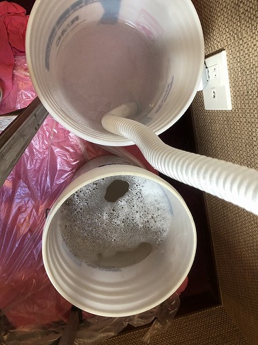 自然分解で無害化する高品質オーガニック洗剤を散布後に、市販の洗浄機よりも水量が多く若干水圧が高いカスタマイズ洗浄機で丁寧に洗浄していきました。