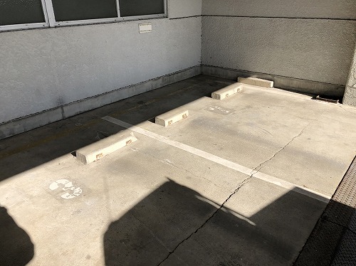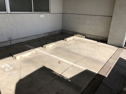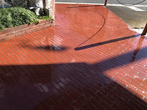 ゴミ置き場前、アプローチタイルの水洗いを行います