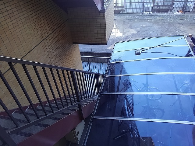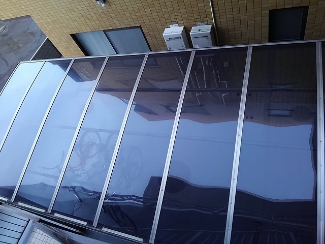 自転車置き場のルーフ洗浄