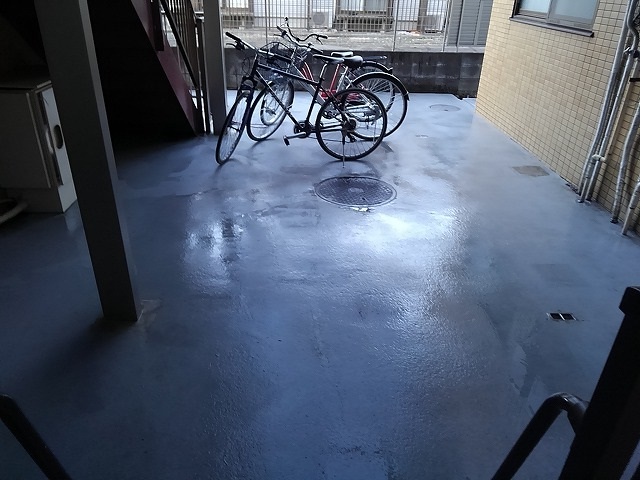自転車置き場の床面も高圧洗浄でキレイになっております。
