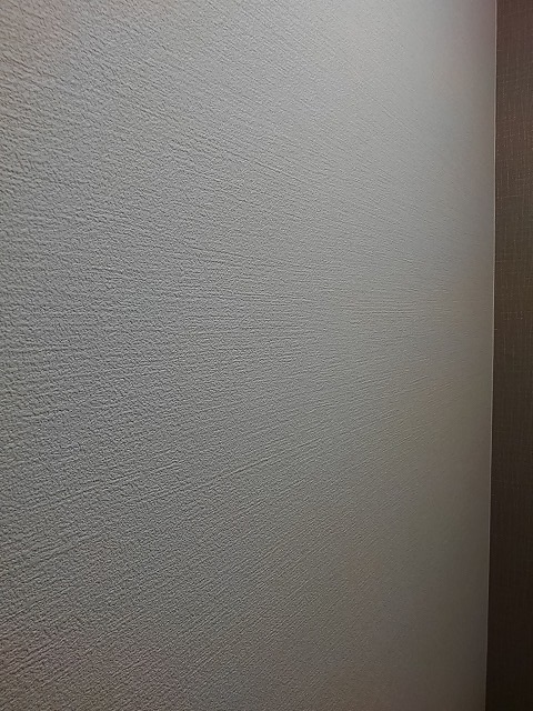 画像だと伝わりにくいですが、近くで見ると、優しい塗り壁調の壁紙になっております。