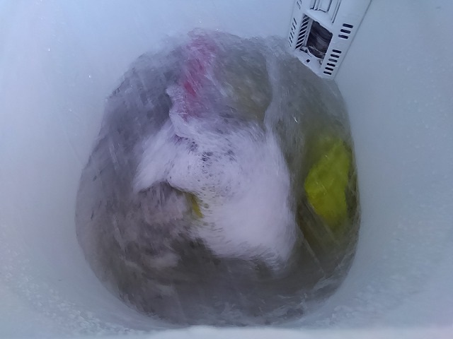 戻って来て弊社営業所に設置してある最新型洗濯機(2層式 笑)にてモップやタオルを洗います。