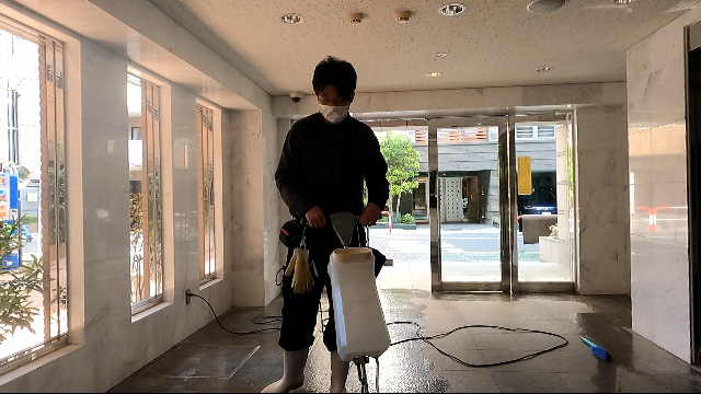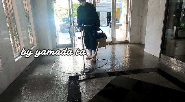 エントランス・風除室のポリッシャー掛け・バキューム掛け。