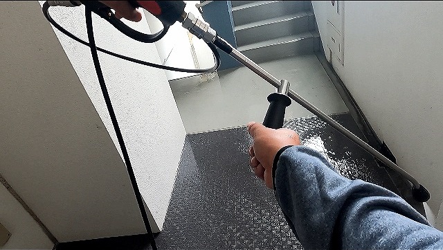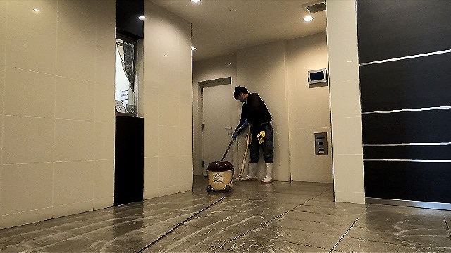 ヤシ油由来の自社開発洗剤。臭いはぼほ無臭なので、エントランスでもOKです。