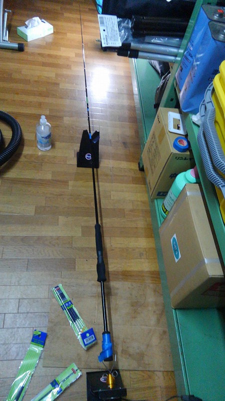 イカの引きは強いので、竿が伸されないように硬くて短いロッドを自作。