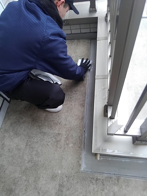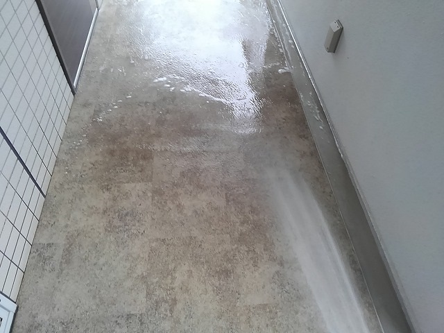 お客様が高圧洗浄をかけたり、常にモップ掛けを行っているのでアパート清掃は必要無いんじゃないかと思うほどの清潔な物件を、お客様が気にしている長尺シートの凹凸部分の凹部分の汚れを徹底的に落とすため、手こすりで5階分を作業いたしました。