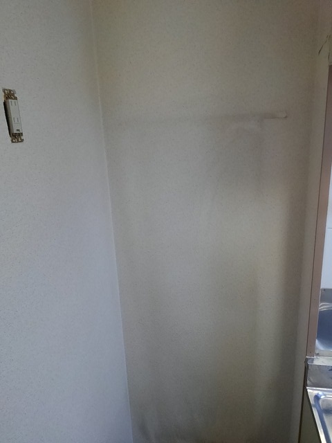 冷蔵庫置き場の張り替え前はこんな感じで真っ黒でした。