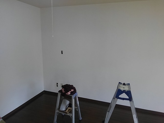 点検口からでは判定できない隠ぺい場所から漏っているので、報告して壁紙張り替えに戻ります。