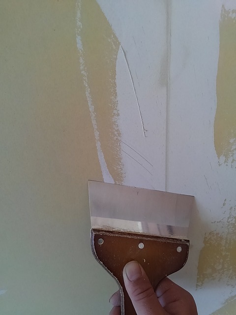 八王子市でクロス張り替え前のパテ入れ後のケレン掛け