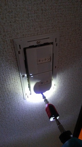 下見したときに、キッチンのスイッチプレート枠が割れていたので、ついでにサービスで交換しておきました(安くてもサービス精神は変わらないという笑)