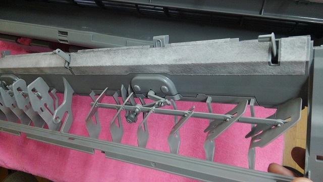 ダストボックス裏のフィルターのホコリを濾すブラシの画像。