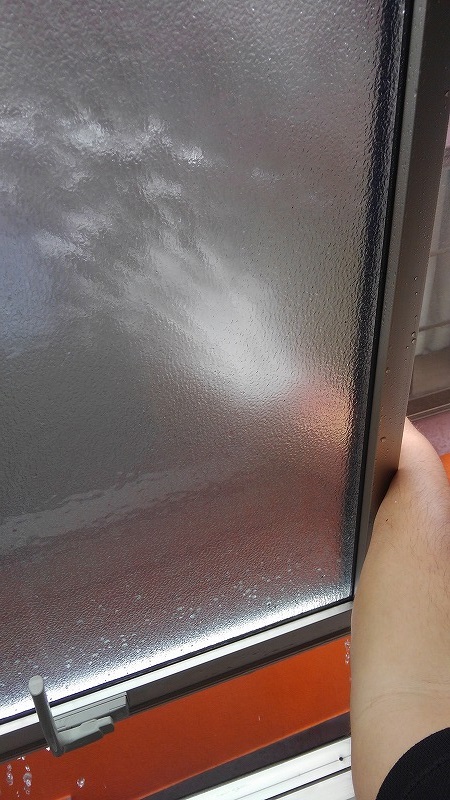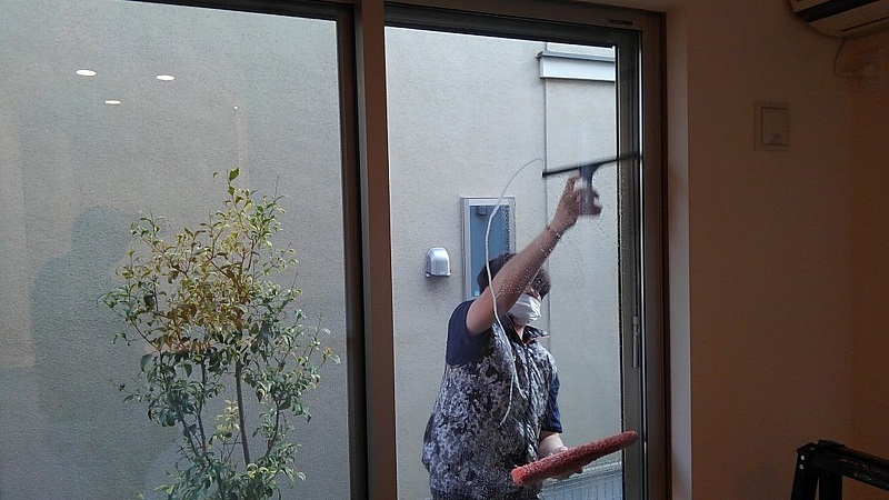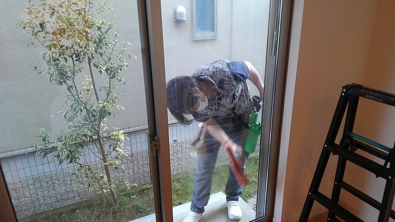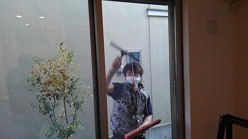 お客様を待っている間、仕上げのガラス作業です。