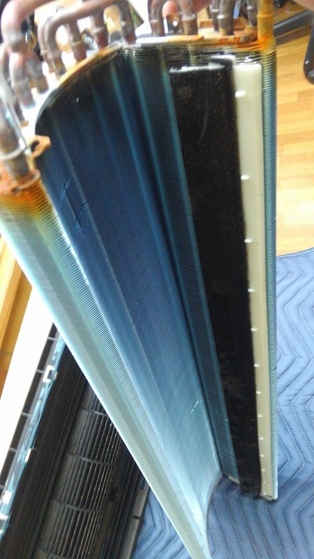 2018年のエアコンですが、汚れはどうかなぁ~。とアルミフィンを取り外してみますと・・・。